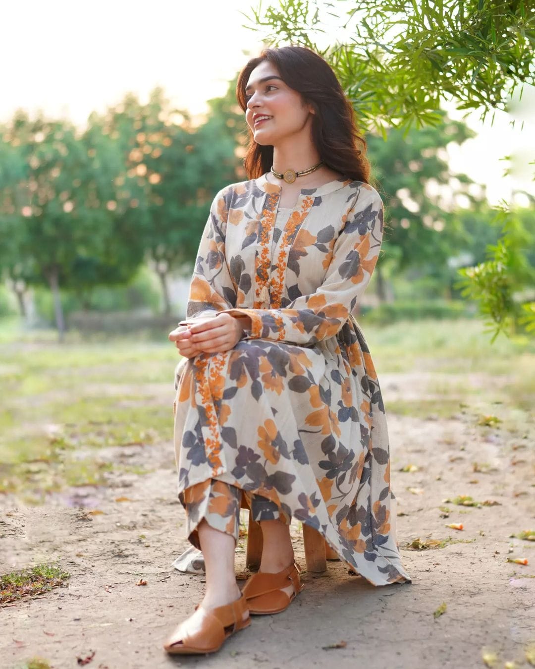 অলওভার স্কিন প্রিন্ট 🍁এমব্রয়ডারি কাজ করা 🍁সাথে লেস এর কাজ করা